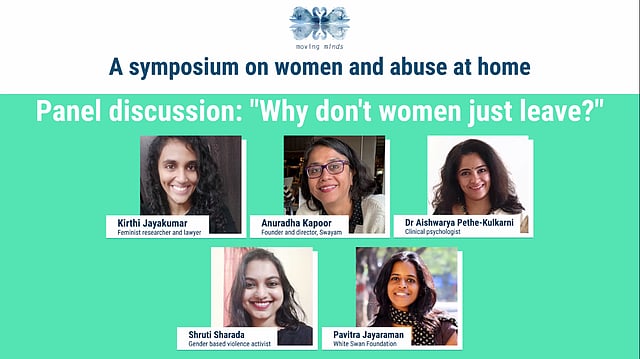 Watch our panelists Anuradha Kappor, founder and director, Swayam, Dr Aishwarya Pethe-Kulkarni, clinical psychologist, Kirthi Jayakumar, feminist lawyer, and Shruti Sharada, gender based violence activist in conversation with Pavitra Jayaraman of White Swan Foundation, discussing the complexities of exiting an abusive relationship.
