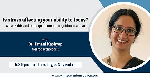 Neuropsychologist, Dr Himani Kashyap from The National Institute of Mental Health and Neuro-Sciences (NIMHANS) will help us understand how stress and other mental health issues affect our cognitive abilities. Come join us with your questions in a Facebook live session on November 5, 2020 at 5:30 pm.