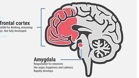 The prefrontal lobe is that part of the brain that is responsible for all kinds of rational decisions. It is involved in the assessment of risk associated with a particular action, judgement, reasoning, impulse control or behaviour inhibition etc. In adults, this part is fully developed and is connected to all the other parts of the brain. So the adult brain works as a whole, integrating information from all the areas and taking informed decisions. In teenagers however, this part is still developing and continues to do so through early twenties.